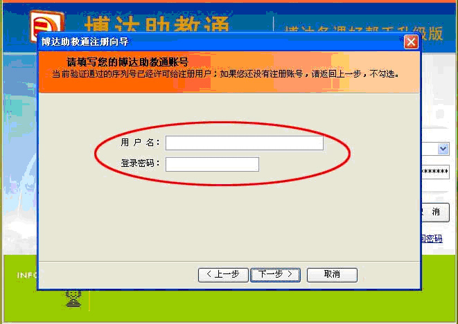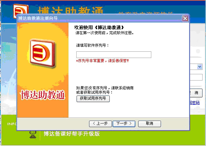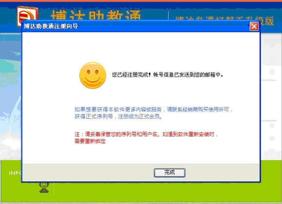 2、用已有的博达助教通账号注册时,请务必已注册的账号对应的序列号(即注册时填写的序列号),如果忘记,请联系客服QQ:705848271,提供博达助教通账号查询相应的序列号。