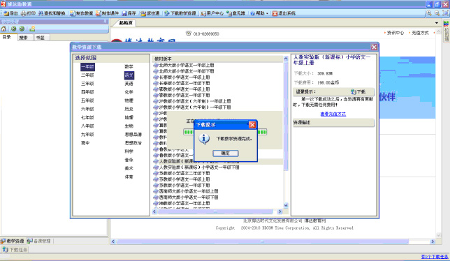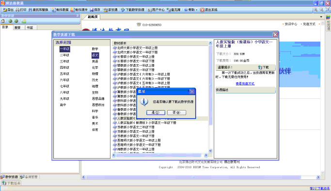 如果确认下载此年级、此学科、此版本教材教学资源,点击“是”按钮操作完成。如果选错学科、年级或教材,选择“否”,按照上面的步骤重新选择。