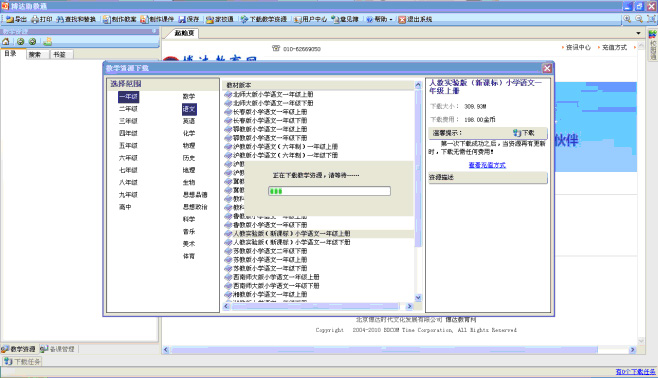 教学资源下载完成,点击“确定”即可,软件界面的左侧会出现教材的树状目录。