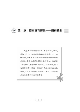 第一章 树立教育理想———拥有初心 现在有一个流行词语叫“不忘初心”,初心, 是指一个人一开始所抱持的理想信念。一个人 做事情,如果能够始终如一地遵循着最初的理 想信念,最后就能得到圆满、取得成功。这就是 “不忘初心,方得始终”的本义。作为教师,我们 也需要拥有和保持一份纯洁、美好、高尚的从教 初心,让这份初心一直伴随我们前行,为我们带 来成长的喜悦和成功的幸福。 1
